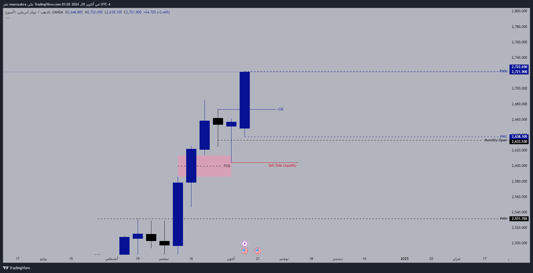 بعد ما تم الصعود بالشكل يلي شفناه صار عنا منطقة شرائية بالنسبة للفريم الأسبوعي بين مستويات 2675 ومستويات 2650
