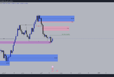 عاود السعر بالصعود وكسر هيكل السوق الهابط داخلياً وتحول للصعود لغاية ما وصلنا لمنطقة BPR كتير مهمة كان متوقع من السعر اغلاق اسفل مناطق ال 50% ومن ثم تواجد دلالة بيعية ومعاودة الهبوط لكن الدعم الاخير يلي صار على الدولار من قبل الاخبار ساعد السعر انو يصعد للاعلى زيادة عن اللزوم